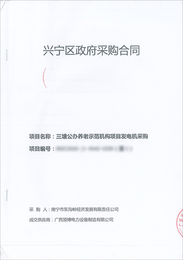 100KW柴油發(fā)電機(jī)組采購(gòu)合同,據(jù)了解,該臺(tái)機(jī)組將作為應(yīng)急備用電源用于三塘公辦養(yǎng)老示范機(jī)構(gòu)項(xiàng)目。