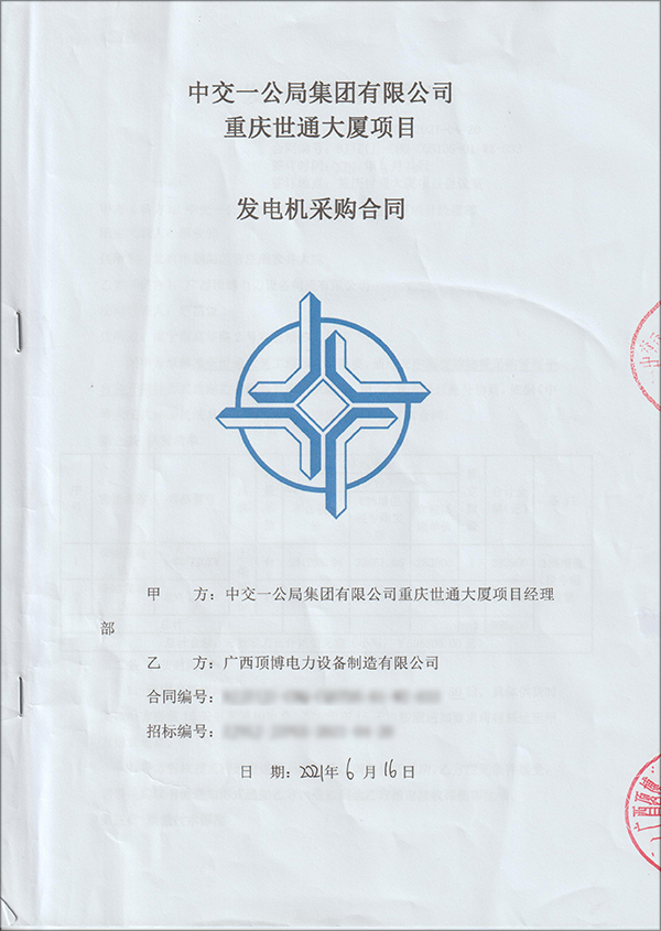 2021年6月16日,廣西頂博電力設(shè)備制造有限公司與中交一公局集團(tuán)有限公司重慶世通大廈項(xiàng)目部成功簽訂2臺(tái)