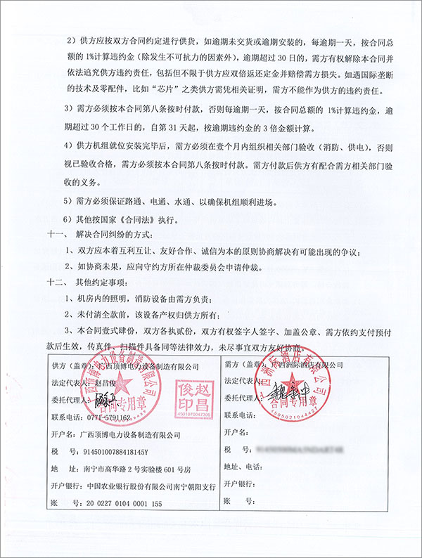 近日,廣西頂博電力設備制造有限公司再度傳來好消息,我司成功與廣西洲際酒店有限公司成功簽訂2臺