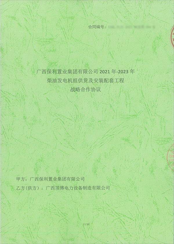 2021年7月26日,廣西頂博電力設(shè)備制造有限公司傳來喜訊,我公司成功與保利置業(yè)集團(tuán)成功簽訂2021年-2023年柴油發(fā)電機(jī)組供貨及安裝配套工程戰(zhàn)略合作協(xié)議,標(biāo)志著接下來的兩年時間內(nèi),作為戰(zhàn)略合作單位的保利集團(tuán)或其控股的各房地產(chǎn)公司或項(xiàng)目公司在建和即將開發(fā)項(xiàng)目的柴油發(fā)電機(jī)組供貨及安裝配套工程均選擇頂博電力作為供應(yīng)商。